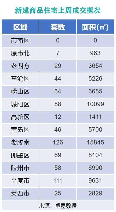 从各区成交情况来看,上周原胶南新建商品住宅以成交面积15845㎡的成绩,位列上周各片区新建商品住宅成交面积榜首位;城阳区以成交面积10099㎡的成绩,位列成交面积榜第二位;平度市以成交面积9631㎡的成绩,位列成交面积榜第三位。