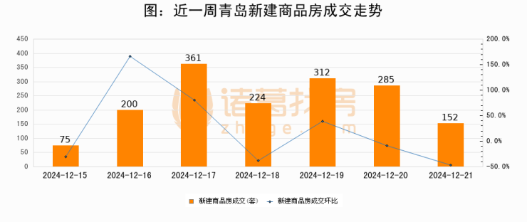 【青岛成交日报】12月21日新房成交152套、二手房37套;涨价房源45套