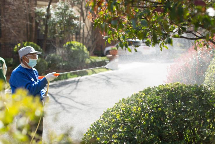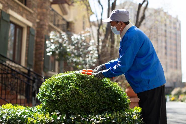 看似简单的病虫害消杀工作,龙湖也有着自己详尽铺排。在药剂选择上,龙湖选择的是广谱性和渗透性更强且药效更加的强石硫合剂;消杀过程中,采取全园喷洒、全株覆盖、避开嫩芽的原则,保护植物的同时也让各种病虫害无处藏身。