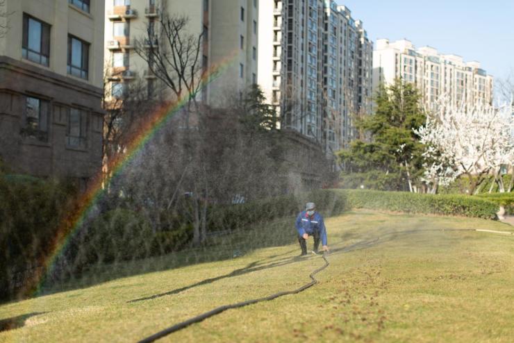 每天春天,龙湖社区绿化的“补水保湿”工作总会率先进行。返青水的浇灌也有着严格的标准,其中“持水深度”是重中之重。乔木的浇水深度一般≥30cm、灌木要≥20cm、草坪及其他地被的浇水深度要求≥10cm。在执行细节方面,龙湖智创生活的园丁们对自己有着近乎苛求的标准。