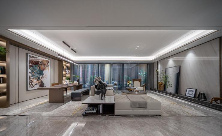 172m²的客厅面宽加到8m以上,比常规三居的客厅面宽还多了近一倍,家人的互动,都在同一空间,把现代社会的距离感,慢慢消弭。