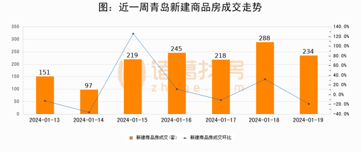 【青岛成交日报】01月19日新房成交234套、二手房248套;涨价房源29套