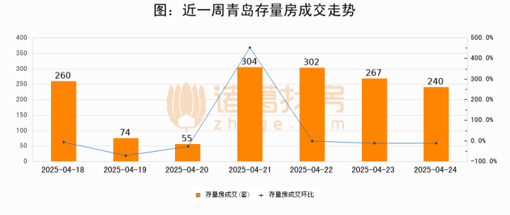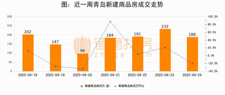 【青岛成交日报】04月24日新房成交188套、二手房240套;