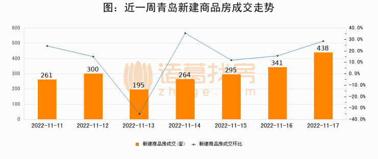 【青岛成交日报】11月17日新房成交438套、二手房198套;涨价房源163套
