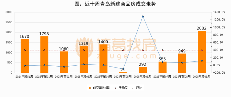 【青岛成交周报】第09周新房成交2082套,二手房1562套,涨价房源180套