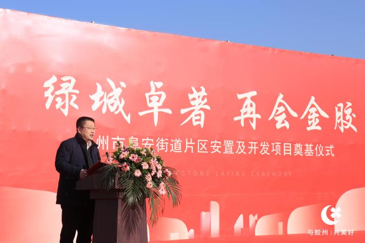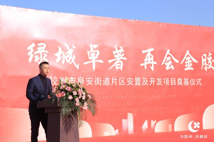 最后,胶州市市委副书记、市人大常委会主任李晓光先生发表致辞。李书记表述:阜安街道片区安置及开发项目由绿城操盘建设,绿城独特的地产模式,在完善城市功能、提升城市品位、拉动经济发展等方面都发挥着积极作用,赢得了各级各地和广大群众的高度认可。阜安街道片区安置及开发项目的奠基,不但预示着绿城在胶州发展的美好前景,也必将为胶州再添一处高档次、高水准的城市综合体,引领胶州城市有机更新阔步前进、大幅提升。希望在今后的项目建设中,阜安街道及项目方以“开局就是决战、起步就是冲刺”的精气神,真正把阜安街道片区安置及开发项目打造成宜居宜业的样板工程。各相关部门、单位要全力配合,促进项目早出形象、早见效益,向全市人民交出一份靓丽的成绩单。
