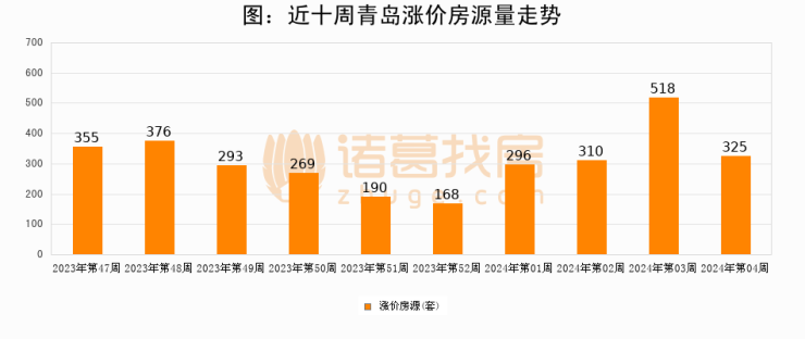 从调价房源来看,第3周青岛涨价房源325套,较上周下降37.3%。与此同时,3周涨价房源占比回落0.07个百分点,业主信心小幅波动,购房者可则需入市。