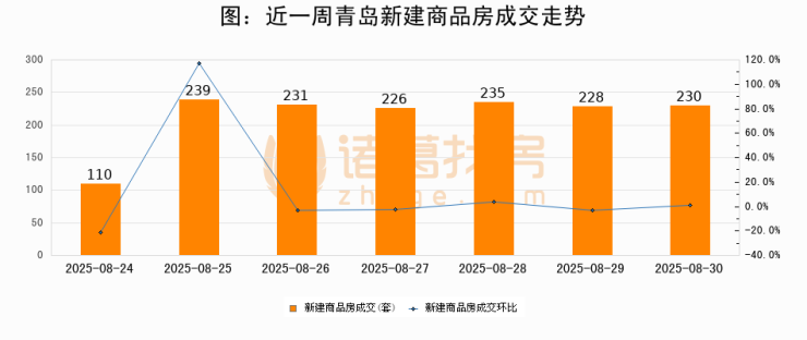 【青岛成交日报】08月30日新房成交230套、二手房54套;