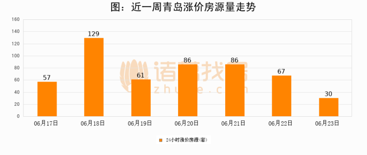 根据诸葛找房数据显示,青岛24小时涨价房源量为30套,较06月22日减少37套,环比下降55.2%。与此同时,涨价房源占比小幅回落,对于购房者来说是一个入市窗口期,购房者可抓住时机入市。