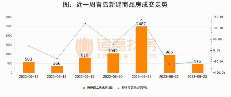 【青岛成交日报】06月23日新房成交476套、二手房6套;涨价房源30套