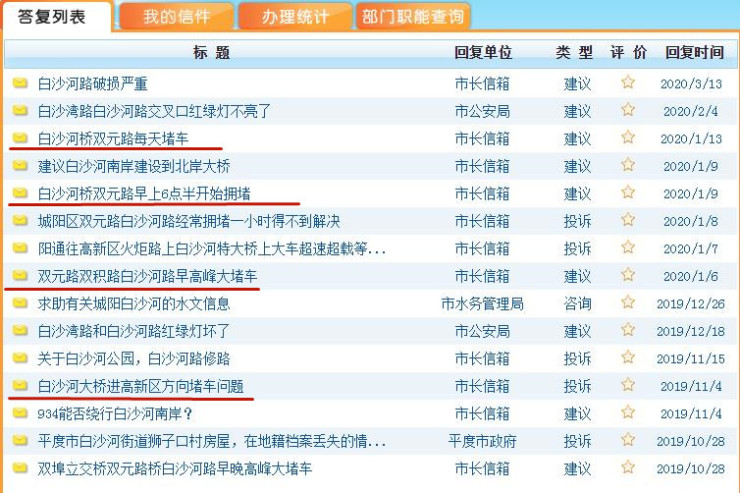 在政府信箱里,关于白沙河板块交通的困扰更是源源不断。