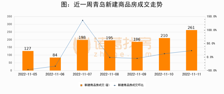【青岛成交日报】11月11日新房成交261套、二手房130套;涨价房源107套