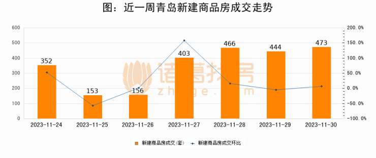 【青岛成交日报】11月30日新房成交473套、二手房205套;涨价房源28套