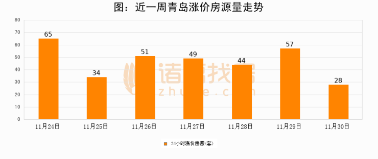 根据诸葛找房数据显示,青岛24小时涨价房源量为28套,较11月29日减少29套,环比下降50.9%。与此同时,涨价房源占比小幅回落,对于购房者来说是一个入市窗口期,购房者可抓住时机入市。