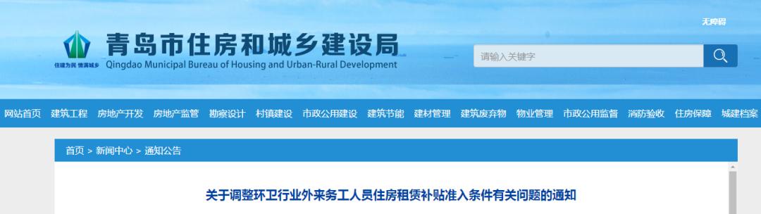 8月17日,青岛市住房城乡建设局发布《关于调整环卫行业外来务工人员住房租赁补贴准入条件有关问题的通知》,进一步放宽基本公共服务行业外来务工人员住房租赁补贴准入标准,进而切实缓解公共服务行业部分企业用工难、一线工人住房困难问题。