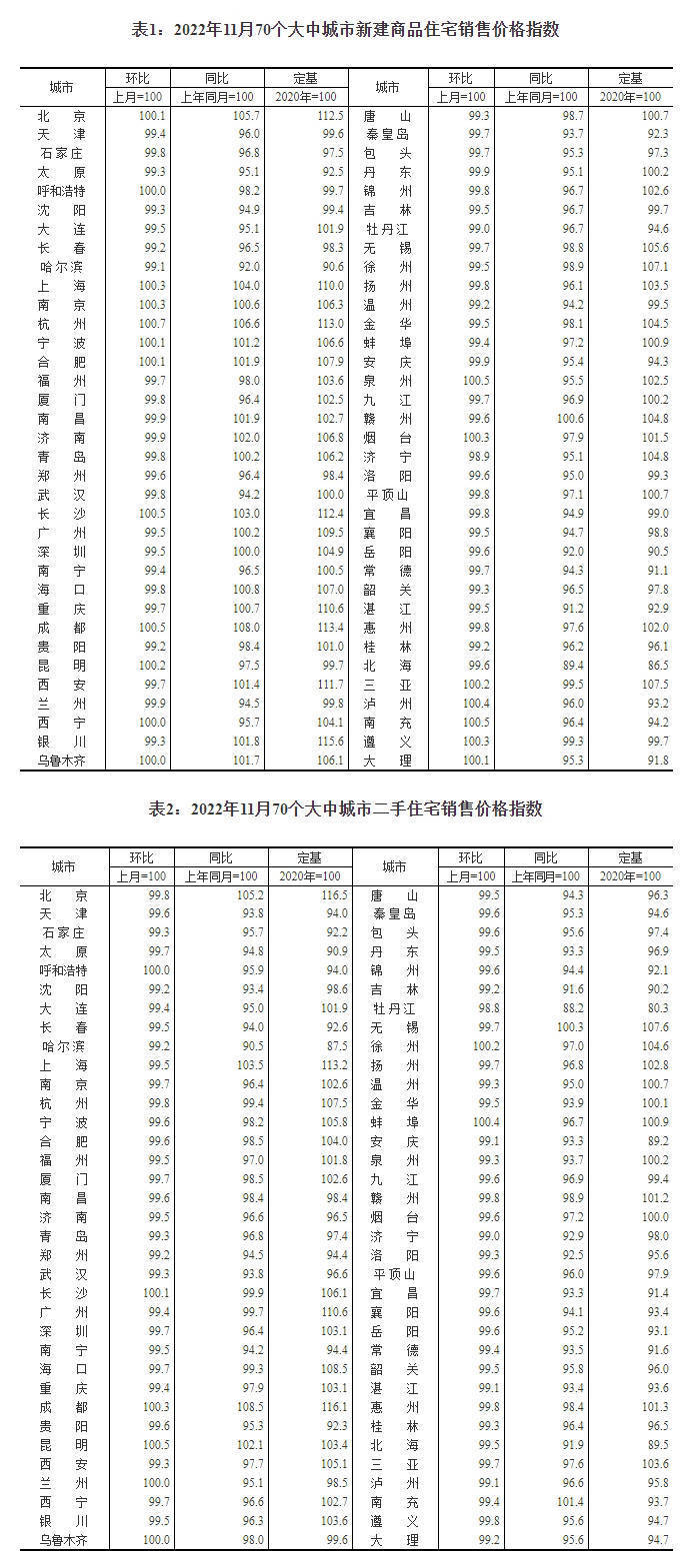 11月份,70个大中城市中,新建商品住宅销售价格环比下降城市有51个,比上月减少7个;二手住宅销售价格环比下降城市有62个,个数与上月相同。