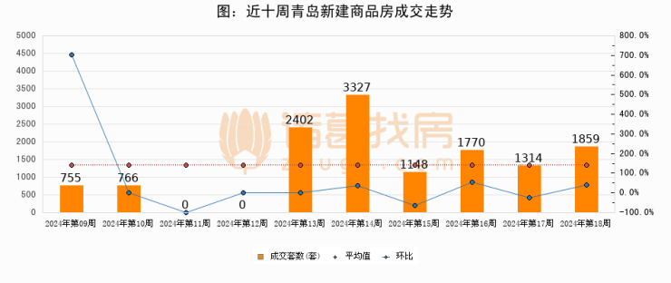 【青岛成交周报】第17周新房成交1859套,二手房1711套,涨价房源297套