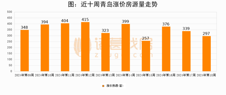 三、本周涨价房源297套,较上周下降12.4%