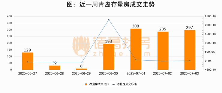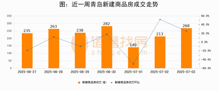 【青岛成交日报】07月03日新房成交268套、二手房297套;涨价房源1套