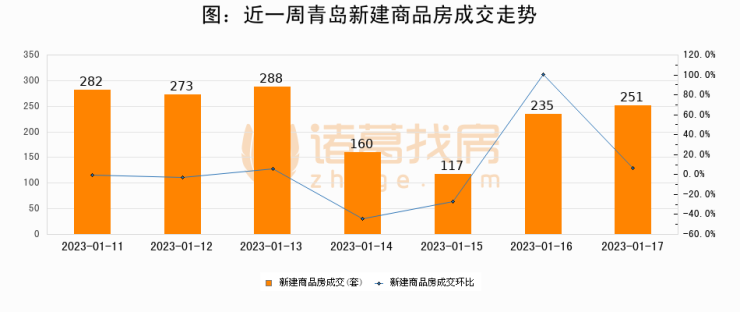 【青岛成交日报】01月17日新房成交251套、二手房141套;涨价房源33套