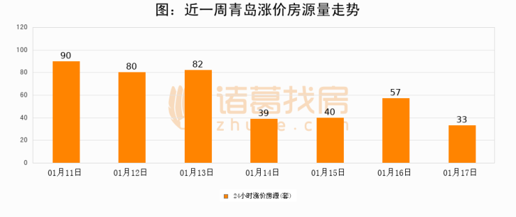 根据诸葛找房数据显示,青岛24小时涨价房源量为33套,较01月16日减少24套,环比下降42.1%。与此同时,涨价房源占比小幅回落,对于购房者来说是一个入市窗口期,购房者可抓住时机入市。