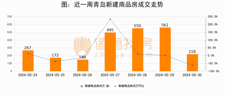 【青岛成交日报】05月30日新房成交218套、二手房266套;涨价房源44套
