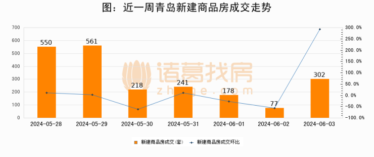 【青岛成交日报】06月03日新房成交302套、二手房282套;涨价房源24套