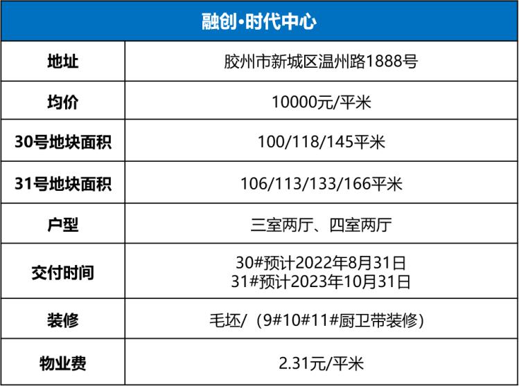 融创时代中心位于胶州市新城区,由融创开发,项目距离胶州市政府3千米,距离城市中心商圈3千米,自带500米商业步行街,3000平农贸市场。