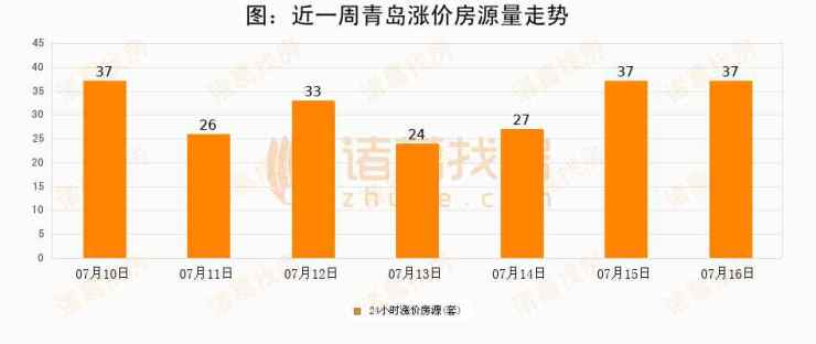 根据诸葛找房数据显示,青岛24小时涨价房源量为37套,较07月15日持平。