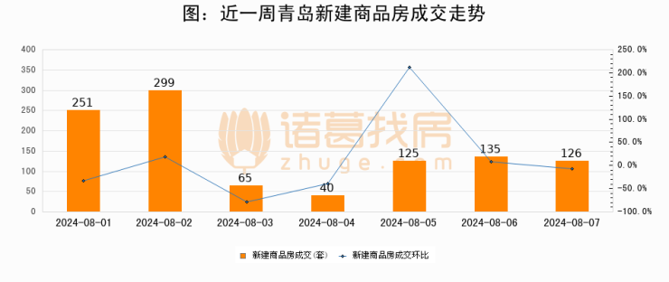 【青岛成交日报】08月07日新房成交126套、二手房216套;涨价房源35套