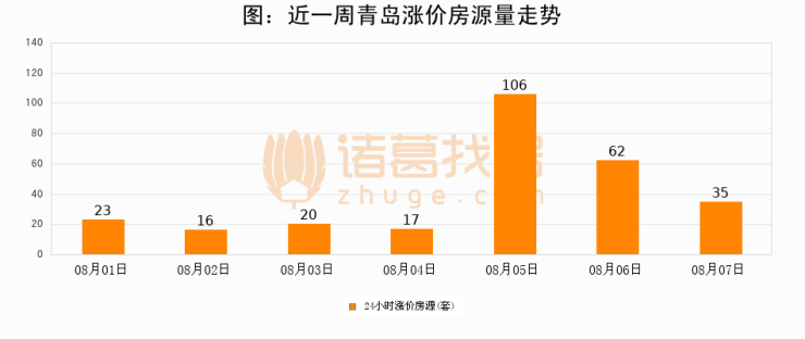 根据诸葛找房数据显示,青岛24小时涨价房源量为35套,较08月06日减少27套,环比下降43.5%。与此同时,涨价房源占比小幅回落,对于购房者来说是一个入市窗口期,购房者可抓住时机入市。