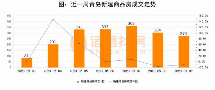 【青岛成交日报】05月09日新房成交274套、二手房293套;涨价房源74套