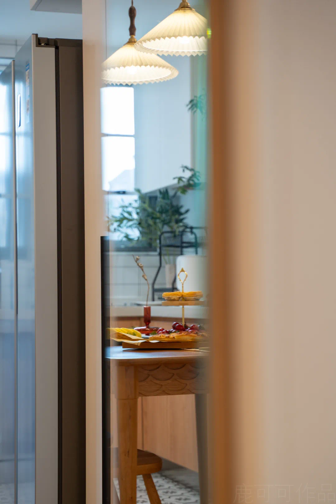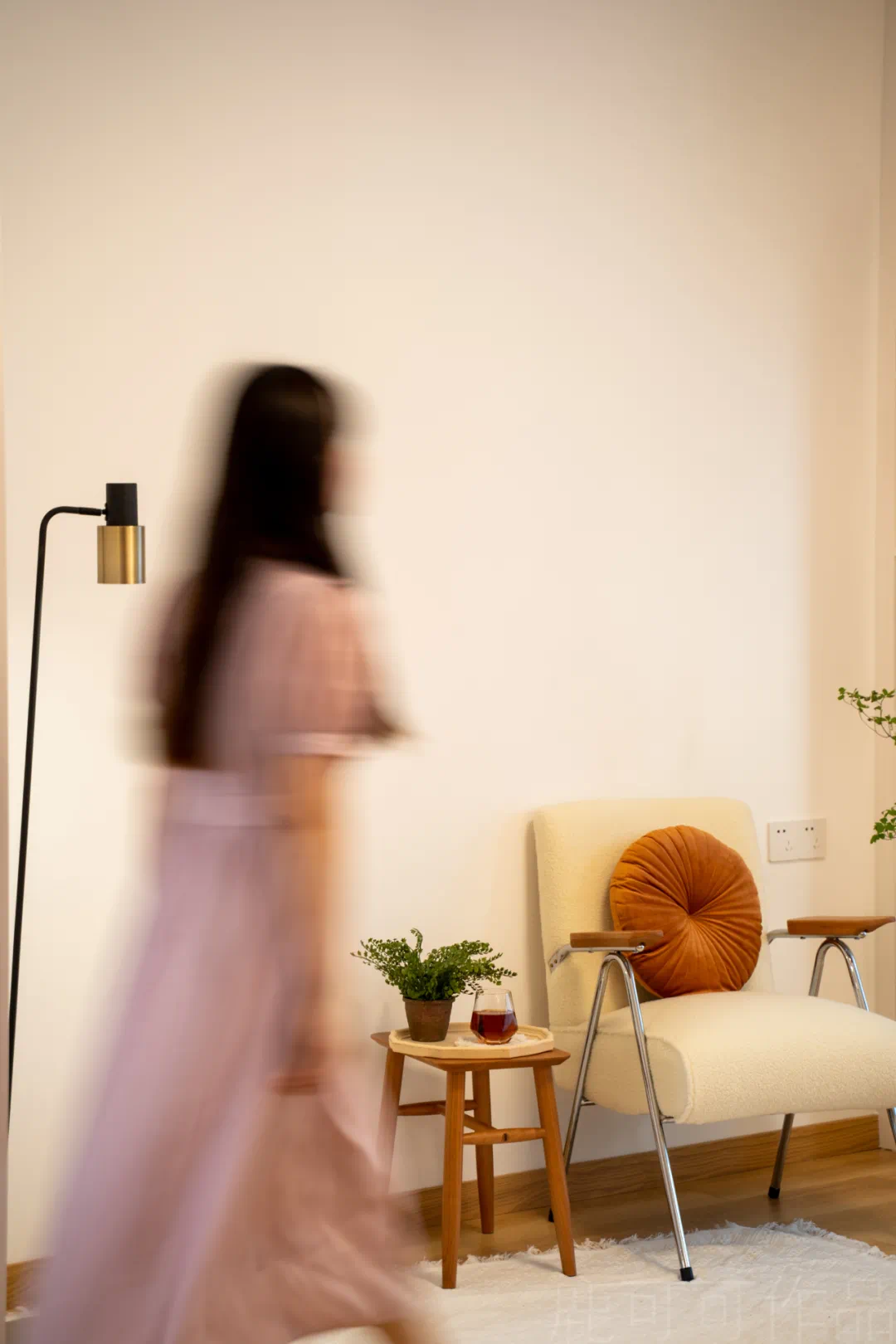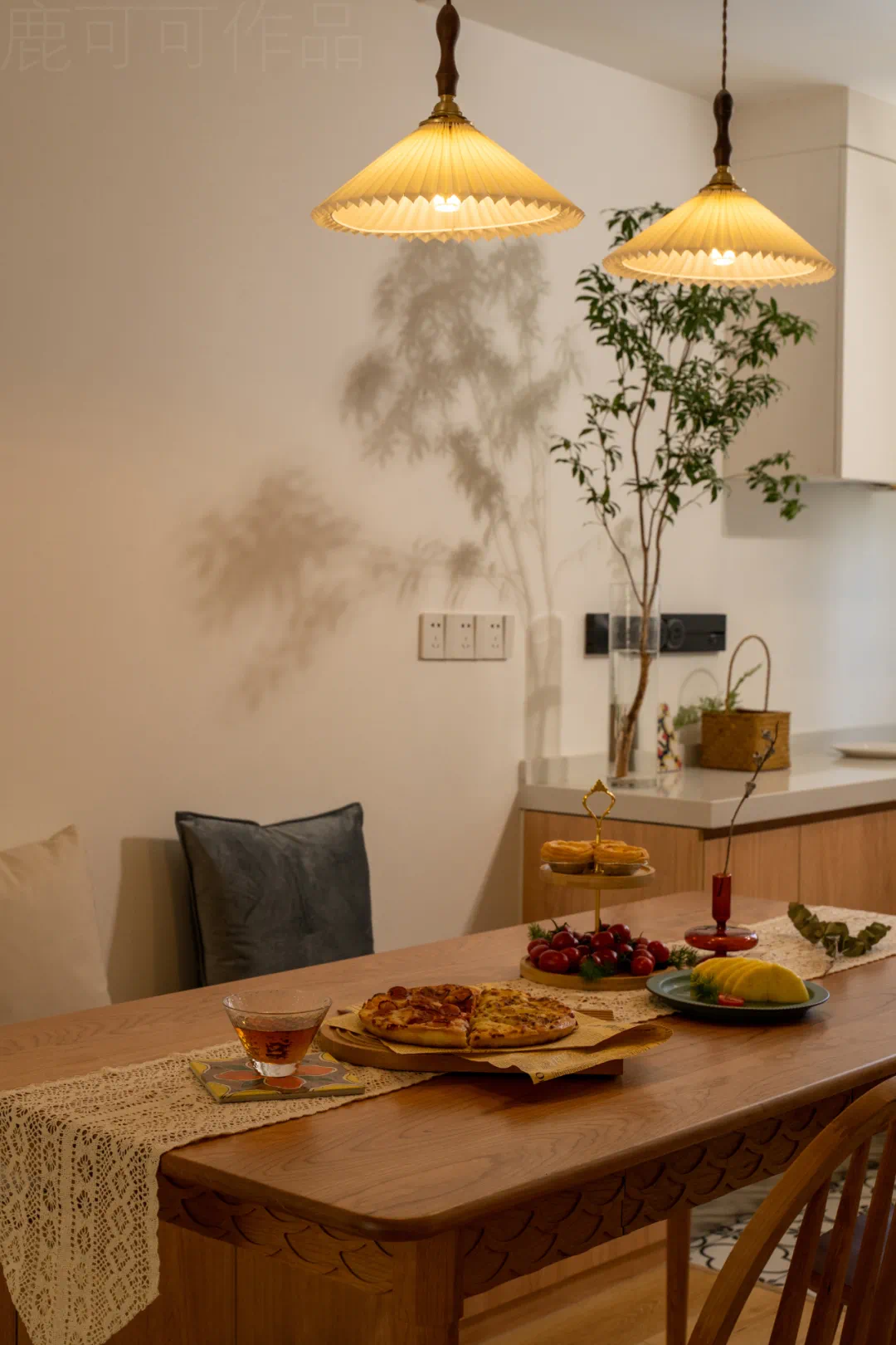 这面留大白的墙就是每个节日的背景墙,随心布置~也是客厅的阅读角,旁边的收纳柜留了开放的书柜,放置常阅的书本。