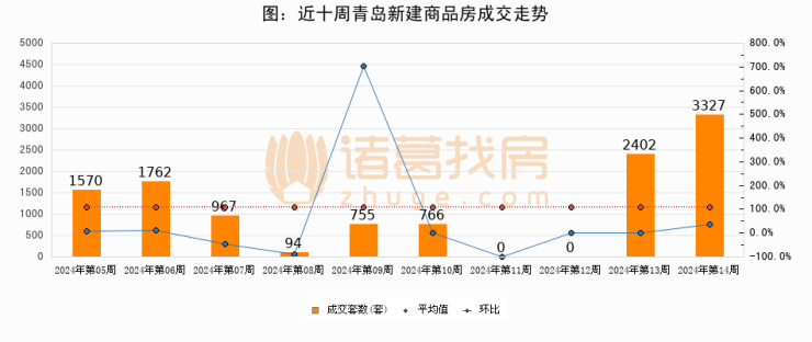 【青岛成交周报】第13周新房成交3327套,二手房1489套,涨价房源399套