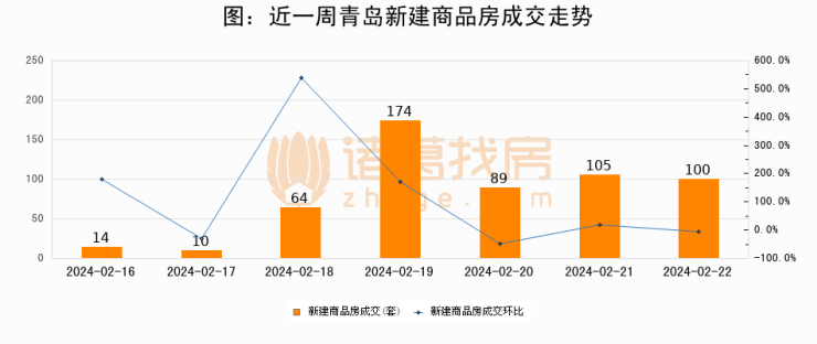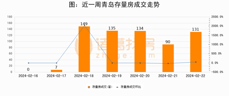 【青岛成交日报】02月22日新房成交100套、二手房131套;涨价房源16套