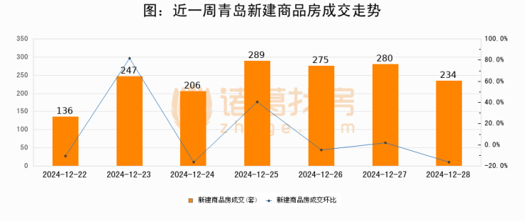 【青岛成交日报】12月28日新房成交234套、二手房57套;