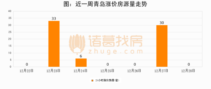 根据诸葛找房数据显示,青岛24小时涨价房源量为0套,较12月27日减少30套,环比下降100%。与此同时,涨价房源占比小幅回落,对于购房者来说是一个入市窗口期,购房者可抓住时机入市。