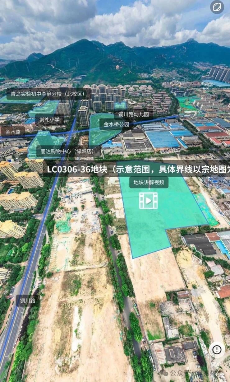36号地块位于李沧区九水东路以北、铜川路以东,占地面积38918.4㎡,容积率1.7,总建面58646.28㎡(出让住宅建面54686.28㎡),其中划拨6750㎡教育用地,建筑密度≤30%,绿地率≥30%。