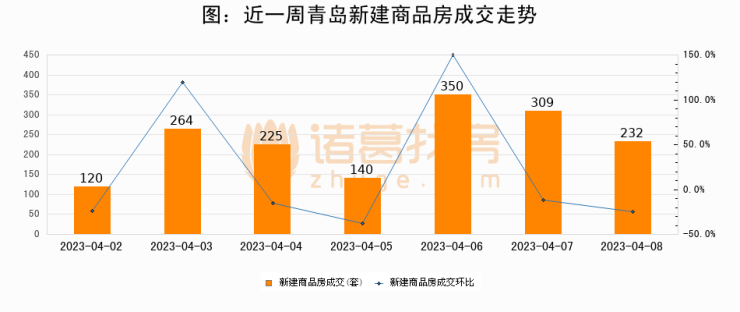 【青岛成交日报】04月08日新房成交232套、二手房57套;涨价房源243套