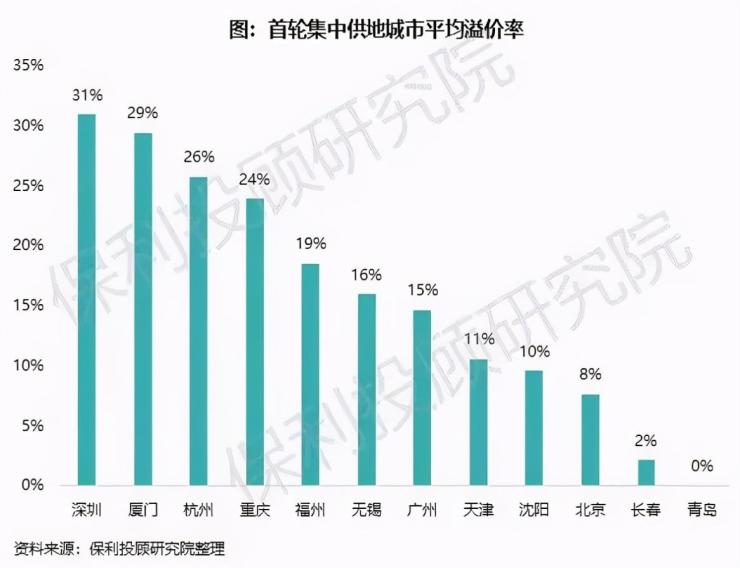 在完成了首轮供地的一些热点城市中,今年因“房价上涨快”而出圈的城市,平均溢价率都在25%以上,其他热门城市也都超过了10%。