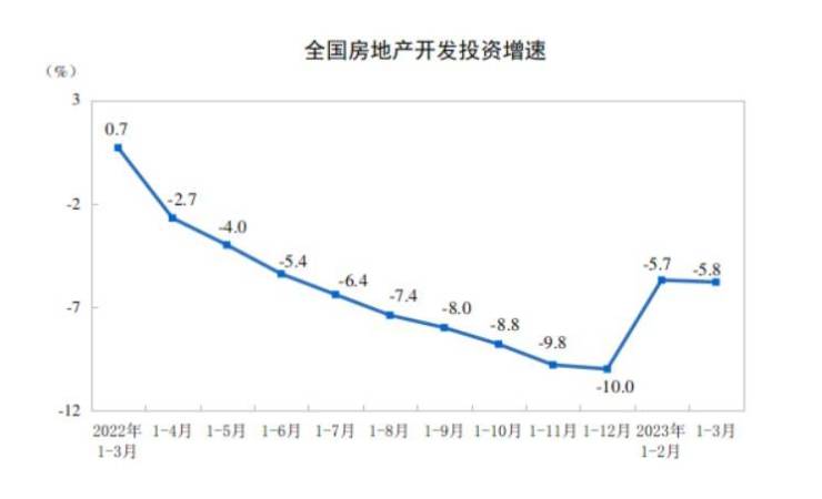 按照国家统计局数据,一季度房地产投资累计同比下跌5.8%,较2月末小幅回落0.1个百分点。
