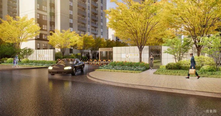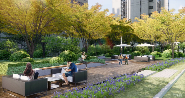 除了充满仪式感的公园式归家轴线,越秀星汇城社区内同时设置四季花园组团和特色植物景观,培植银杏、国槐、樱花、乌桕、朴树、榉树等名品树种,打造一季一景、四季如赏的园林景观,让生活的每一寸空间都充满浪漫和诗意。