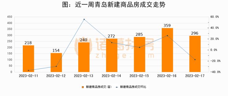 【青岛成交日报】02月17日新房成交296套、二手房304套;涨价房源180套