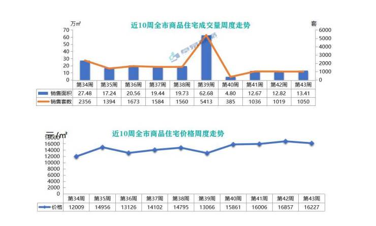 价格方面,上周青岛新建商品住宅均价为16227元/㎡,下降630元/㎡,降幅为3.74%。