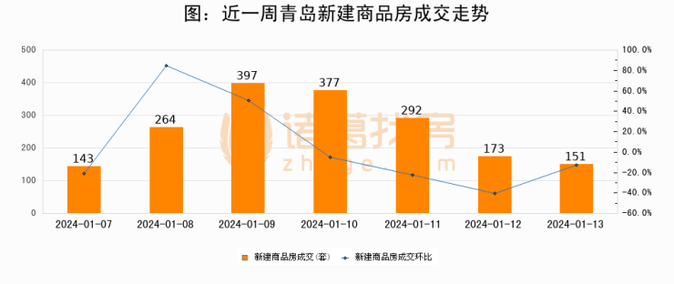 【青岛成交日报】01月13日新房成交151套、二手房51套;涨价房源57套