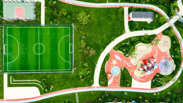 在交付园区中,一处处细节的打磨,记录着匠人苛求优质的精;郁郁葱葱的园林,与家家温暖的灯光交相辉映;日复一日的匠心,浓缩在美轮美奂的园林风景中;繁华的图景,荡漾在流光溢彩的建筑幕墙。绿树繁花,休憩设施,运动公园,物业人员忙碌的身影,处处展露着蓝谷生活的全新品质。作为板块内的首批地产开发建设者,碧桂园以空间为尺度,一寸寸将现代化的生活带至蓝谷,土地、建筑、人群、配套,百万大城的雏形跃然而出。