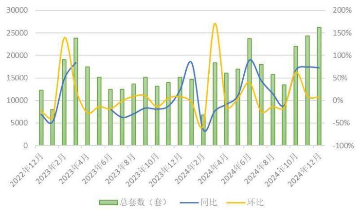 不过,这一数字在2024年第四季度再度被刷新。9月末,上海再度出台“沪七条”,在调整住房限购政策的同时,优化信贷政策、调整住房税收政策。机构监测数据显示,2024年四季度二手房成交量持续走高,12月份更是超过2.5万套,再创新高。