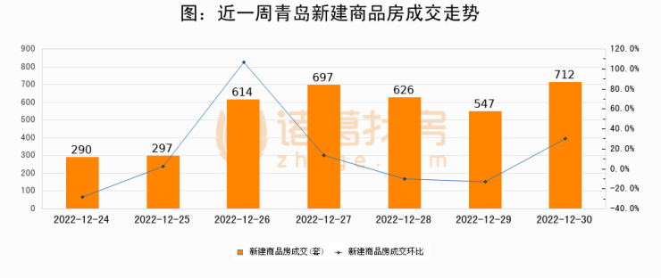 【青岛成交日报】12月30日新房成交712套、二手房140套;涨价房源103套