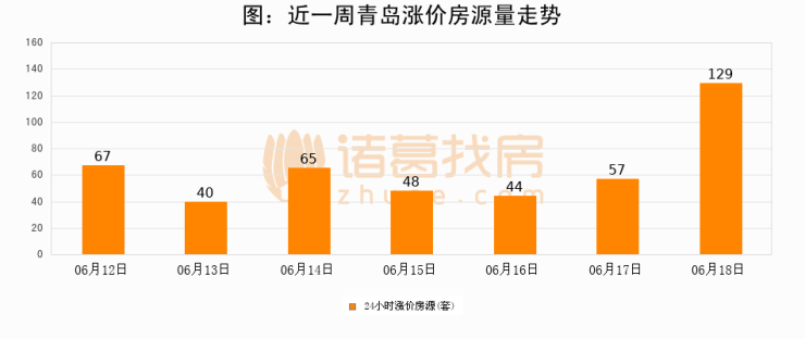 根据诸葛找房数据显示,青岛24小时涨价房源量为129套,较06月17日增加72套,环比上涨126.3%。与此同时,涨价房源占比小幅扩大,业主信心有所提升。