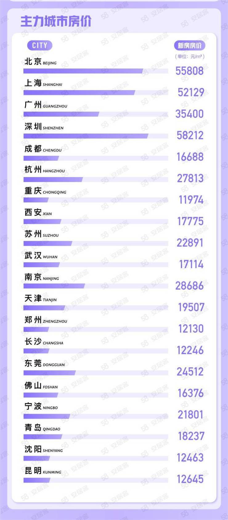 从主力城市的新房线上均价来看,一线城市中,深圳新房线上均价为58212元/平方米、北京为55808元/平方米、上海为52129元/平方米、广州为35400元/平方米。二线城市中,杭州新房线上均价为27813元/平方米、南京为28686元/平方米、天津为19507元/平方米。